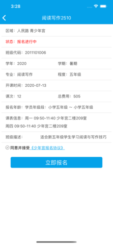 1.全流程线上报名系统支持200人同时选课不卡顿,智能提醒功能确保不错过心仪课程的开班时间。2.班级社群提供文字、语音、视频多种交流方式,专业教师在线答疑,学习疑问不过夜。3.活动中心每日更新全国各地青少年宫举办的研学旅行、才艺大赛等特色活动,一键报名即可参与。4.线上知识竞赛、创意作品征集等网络活动设有丰厚奖励,优秀作品将获得在平台首页展示的机会。5.独家开发的家长监督模式,可实时查看孩子学习进度,还能通过定位签到功能确保活动安全。