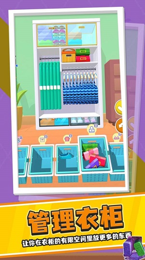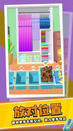游戏采用直观的拖拽操作,玩家需要将散落的衣物按照类型、颜色或季节进行分类整理。每件衣物都有独特的物理特性,比如毛衣需要折叠收纳,连衣裙要悬挂摆放,考验玩家的空间规划能力。随着关卡难度提升,还会出现需要特殊处理的衣物,如需要干洗的礼服或容易起皱的衬衫。游戏特别设计了"完美整理"评分系统,当玩家以最优方式完成收纳时,会触发华丽的特效动画。此外还有限时挑战模式,在倒计时压力下完成整理将获得额外奖励,这种紧张刺激的玩法与平时的舒缓节奏形成有趣对比。