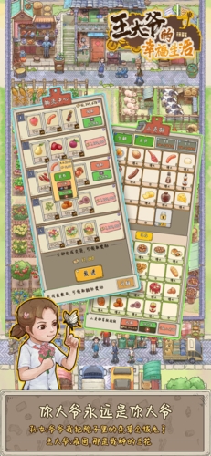 王大妈有一双巧手,能制作各种传统美食,包括面食、榨油、乳制品、泡菜、豆制品、肉制品、糕点等,让玩家体验传统美食的制作工艺;