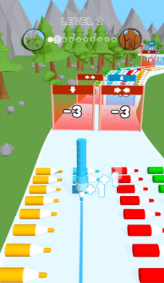 2、创新的涂色玩法,在跑酷过程中需要用画笔为赛道着色,完成特定颜色的涂色任务才能通关。