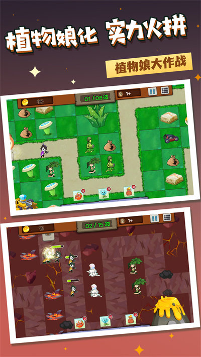 ·部署植物娘防御,可爱的植物娘也有强大的战斗力,通过升级可以解锁更华丽的攻击特效和特殊技能