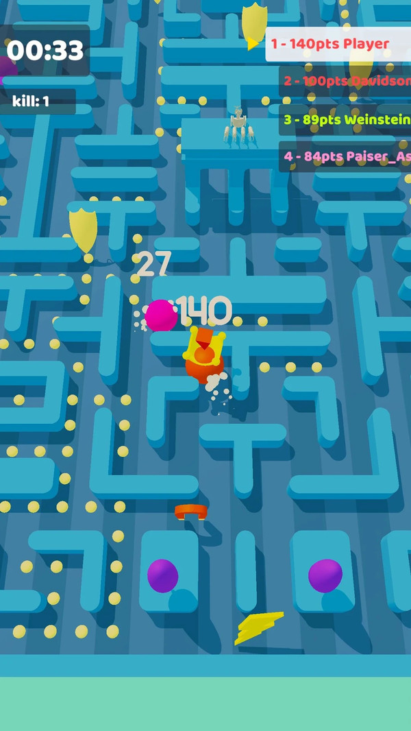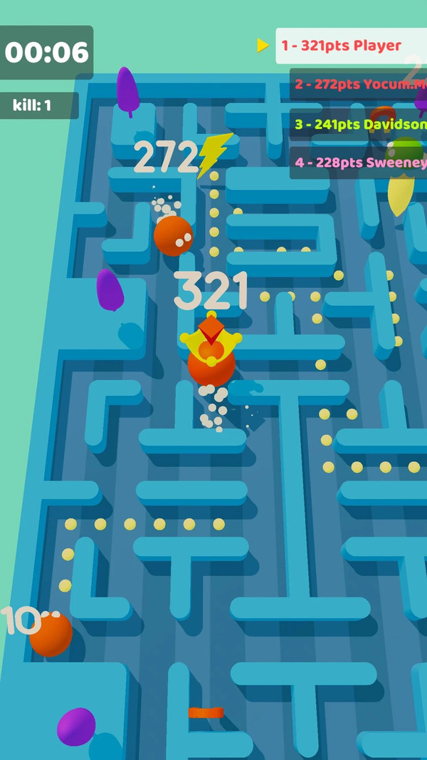 迷宫大作战3D将经典吃豆人玩法与现代化竞技元素完美结合,创造出一个充满策略性的对战世界。游戏采用积分制玩法,玩家需要通过吞噬豆子和其他低分玩家来提升自己的积分排名。独特的排行榜系统会实时显示当前最高分玩家,获得桂冠的玩家将享受全场瞩目的荣耀时刻。游戏画面流畅细腻,3D建模的迷宫场景充满立体感,光影效果让整个游戏世界更加生动。8名玩家将被随机分成4个队伍,在限定时间内展开激烈角逐。团队合作与个人技巧同样重要,只有合理分配资源、制定战术的队伍才能笑到最后。