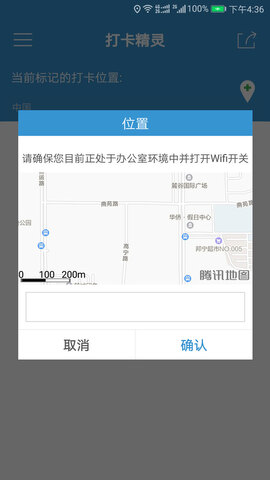 选择好打卡地点后,只需点击确认按钮即可完成定位设置,操作简单快捷;