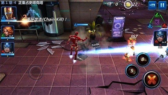 游戏采用循序渐进的成长体系,玩家需要通过日常任务和副本挑战逐步强化英雄实力。在角色设计方面,开发团队从外形到技能都力求最大程度还原原著设定,让每位英雄都独具特色。战斗中可以使用钢铁侠的Unibeam激光炮轰击敌人,也能操控美国队长投掷振金盾牌施展正义打击。游戏采用经典的"虚拟摇杆+一键技能"操作模式,简单易上手却能打出华丽连招。除了培养强力英雄外,玩家还需根据敌方阵容灵活调整战术策略,合理的队伍搭配往往能扭转战局。