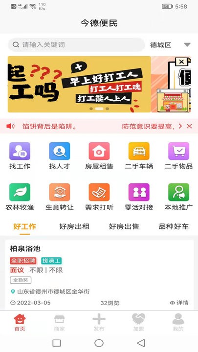 2、在软件内有提供各种实用型的功能板块,每天都会有很多的生活信息在这里发布。除了基础服务外,平台还开发了二手交易、拼车出行、宠物领养等特色功能。信息发布采用智能审核机制,确保内容真实有效,每日更新量超过5000条,涵盖生活方方面面,满足不同人群的多样化需求。
