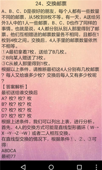 你是否曾梦想过成为一名侦探,用敏锐的洞察力和缜密的逻辑思维破解各种离奇案件?《趣味推理游戏》将带你走进这个充满挑战的世界。这款游戏精心收录了国内外众多经典逻辑推理故事,每个案件都暗藏玄机,等待你去发现蛛丝马迹。通过分析对话细节、寻找矛盾点、串联线索,你将逐步掌握侦探的思维方式。游戏不仅能带来烧脑的解谜乐趣,更能潜移默化地提升你的观察力和推理能力。现在就加入这场智力角逐,开启你的侦探之旅吧!