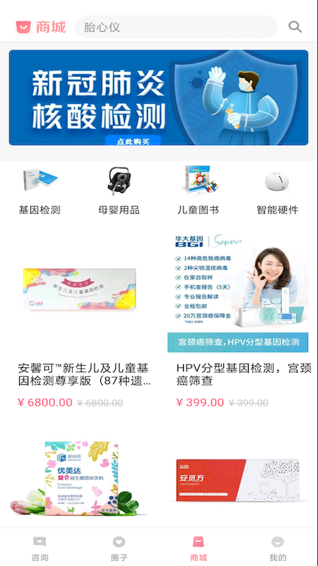 华大基因APP是一款专注于基因科技与健康服务的移动应用平台,为用户提供便捷的线上医疗咨询与基因检测服务。通过图文问诊和电话问诊两种方式,用户可随时与专业医生沟通健康问题。商城内汇聚了基因检测套餐、母婴健康用品、儿童教育图书及各类健康服务产品,满足不同人群需求。资讯栏目实时更新基因科学前沿动态,帮助用户了解最新技术进展与健康知识。平台将尖端基因技术与民生健康需求紧密结合,打造从检测到咨询的一站式健康管理解决方案。