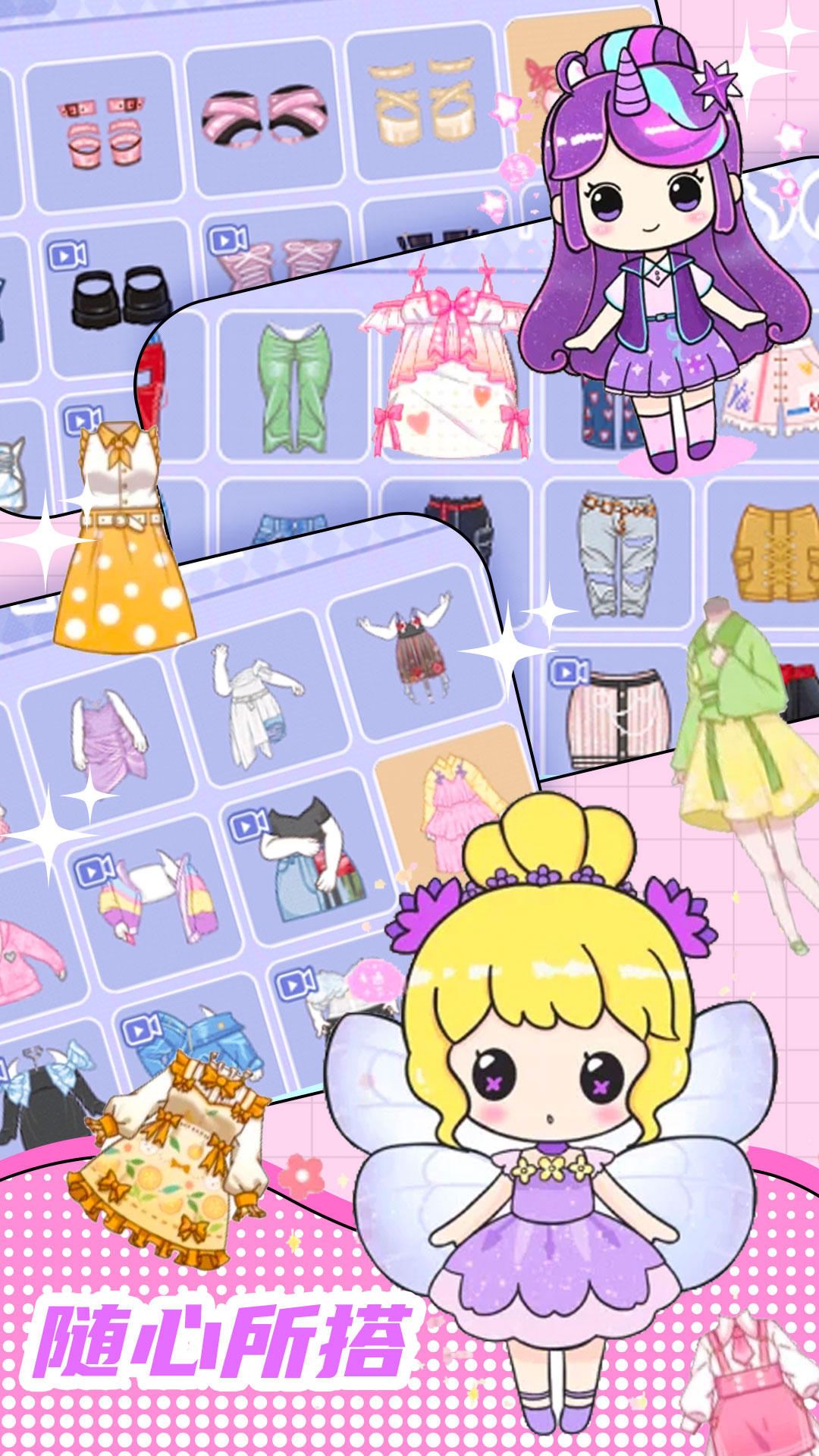 2、高度自由的玩法让玩家可以尽情发挥创意,关卡中准备了大量精美服装和配饰,随时都能为角色换上全新造型;