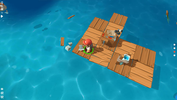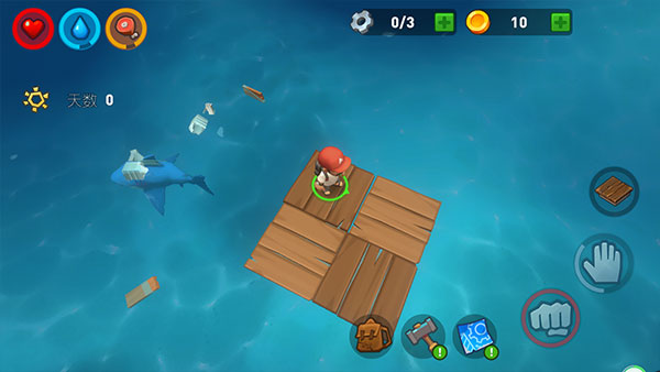 1. 初始资源:游戏开始时,你只有一块小木筏和一个钩子。使用钩子打捞漂浮在海上的物资,如木板、塑料和树叶,这些是建造的基础材料。