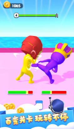 在这场热血沸腾的跑酷冒险中,玩家将操控个性十足的橡皮人角色,在充满机关陷阱的赛道上展开极限挑战。游戏精心设计了数十种不同颜色的增益道具,收集同色系食物可激活强力buff效果,让角色获得攻击强化、速度提升等特殊能力。沿途会遇到各种造型夸张的敌人阻拦,玩家需要灵活运用格斗技巧将其击倒。随着关卡推进,赛道难度会逐步提升,考验玩家的反应速度和操作精准度。独特的物理引擎让战斗过程充满打击感,每一次出拳都能感受到力量碰撞的震撼。