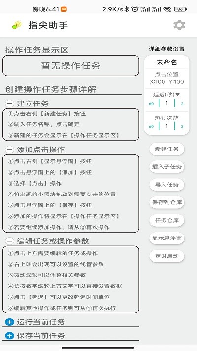 指尖助手是一款免root的自动化操作工具,支持Android系统的各大品牌手机。它能实现自动点击、滑动、跳转等多种功能,满足用户在不同场景下的需求。软件内置丰富的功能模块,用户可以根据需要自由选择使用。界面设计简洁明了,操作流程直观易懂,即使是新手也能快速上手。此外,软件还持续更新优化,为用户带来更多实用功能和更流畅的使用体验。