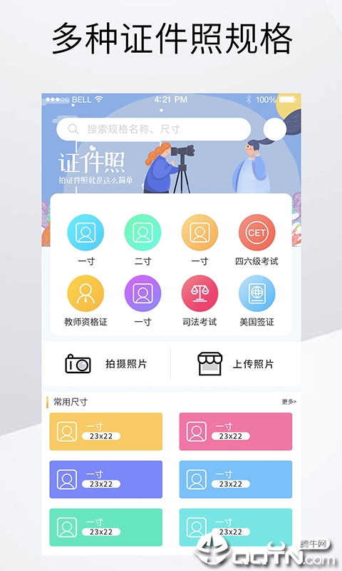1.智能搜索证件照功能提供海量规格尺寸选择,从常见的1寸、2寸到各类考试专用尺寸应有尽有,满足不同场合需求;