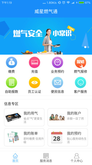 燃气用户可以通过本应用上传用气量、实时查看燃气用量和待缴账单,查看用气量、阶梯周期累计用气量等,让用户用气"心中有数"。此外,app还支持多账户管理,方便家庭成员共同使用,并提供详细的用气分析报告,帮助用户优化用气习惯,节约能源开支。