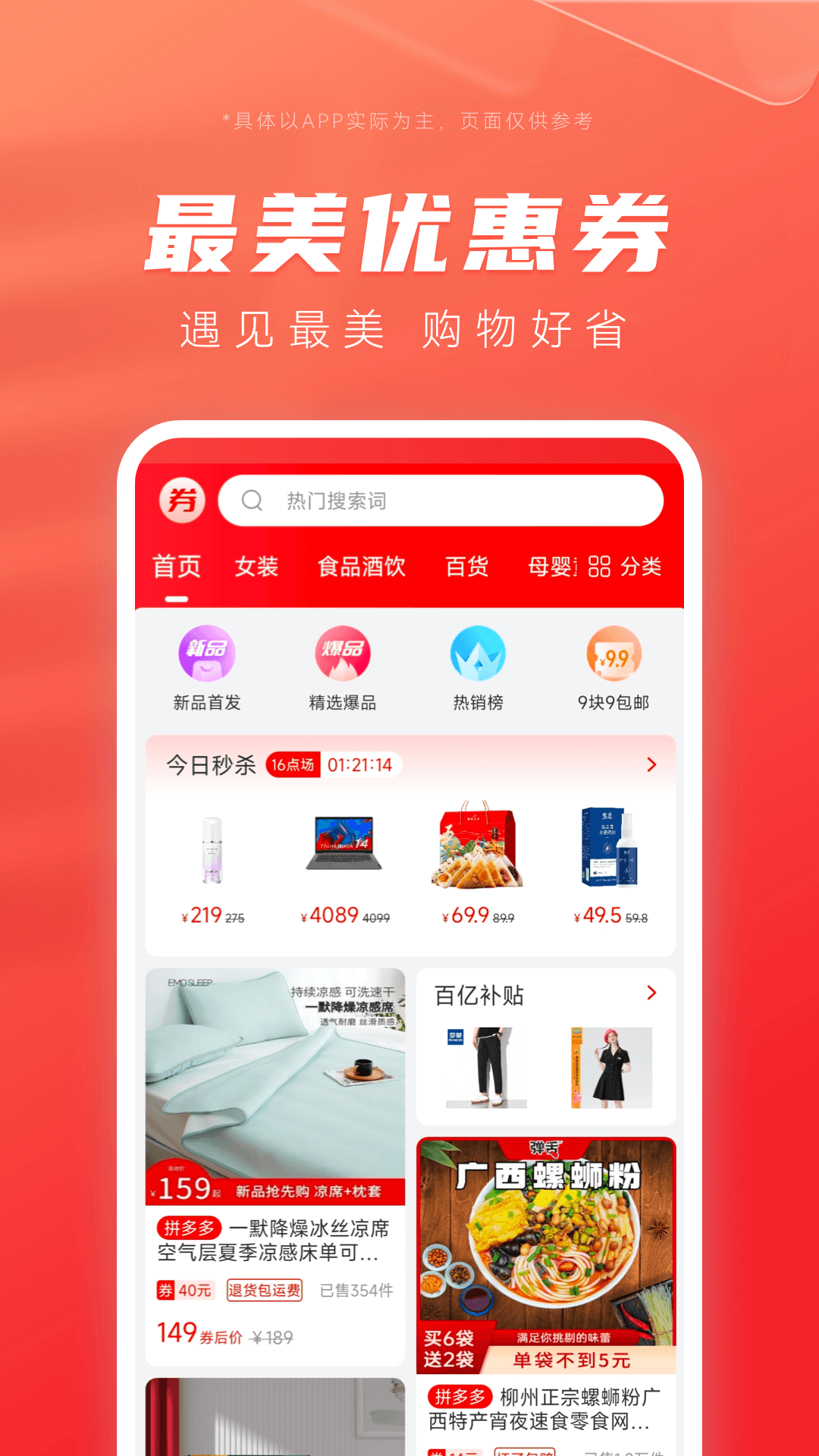最美优惠券APP是一款汇聚全网全品类优惠券资源的购物神器,让您轻松享受超值购物体验。无论是淘宝、京东等电商平台的商品优惠券,还是盒马生鲜、滴滴打车、电费充值等生活服务类优惠券,这里应有尽有。每日精选海量优质商品,覆盖食品酒饮、日用百货、家居电器、服装饰品、手机数码等多种品类,助您以最低价格买到心仪好物。更有丰富的生活权益和超值福利,让您的每一分钱都花在刀刃上。快来下载最美优惠券APP,开启省钱又省心的购物之旅吧!