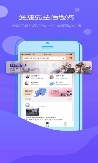 1、社区活动:整合周边三公里生活圈资源,提供亲子手工、长者健康讲座等特色活动。用户可查看往期活动视频回放,参与线上投票决定下期主题。2、场馆预定:涵盖篮球场、恒温泳池等12类设施,实时显示使用状态和消毒记录。支持VR全景预览场地,智能推荐最佳预约时段。3、家政服务:严选200+持证服务人员,提供深度保洁、月嫂护理等8大类服务。系统根据历史订单智能匹配阿姨,清洁过程可通过智能眼镜实时监督。