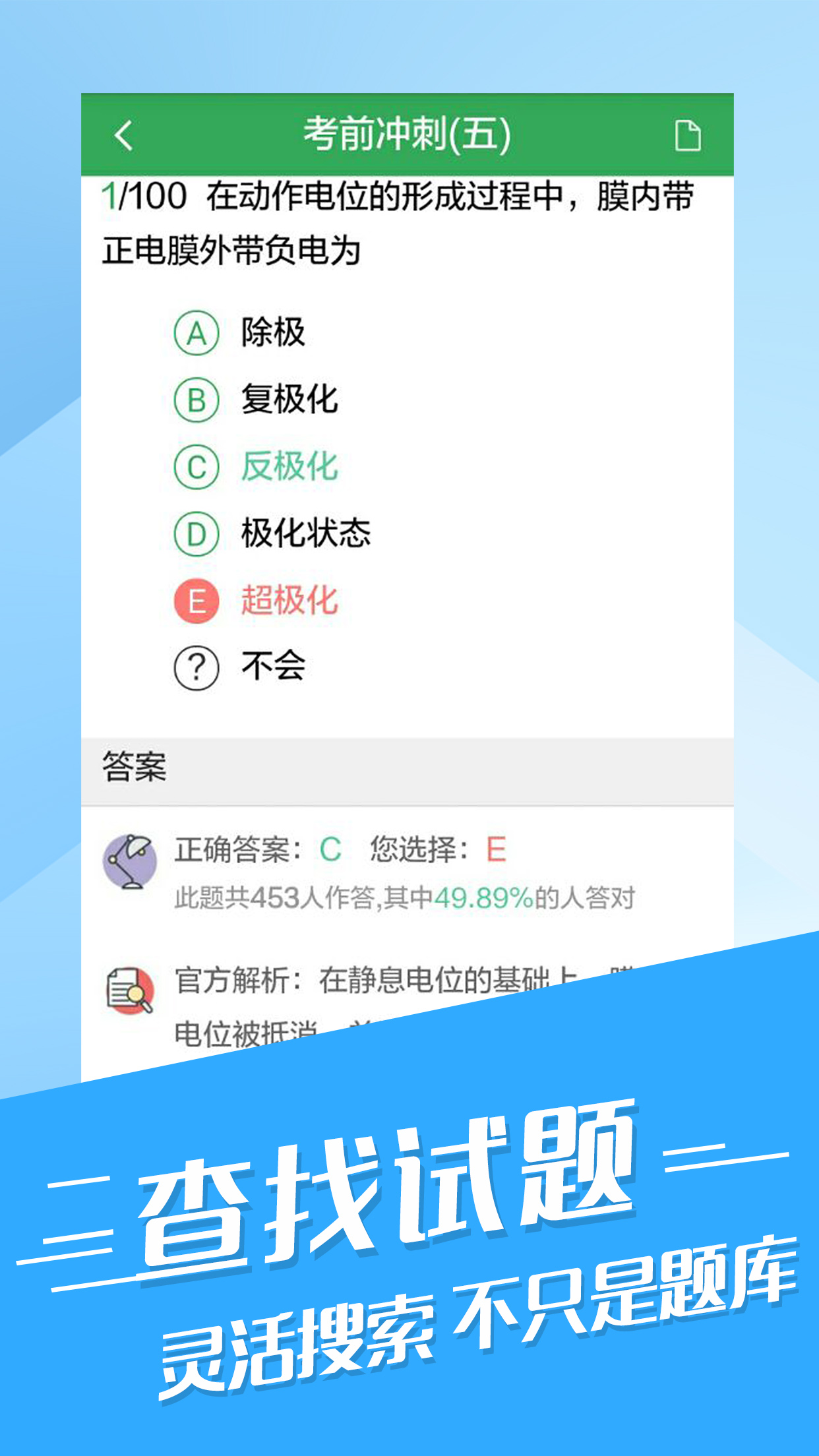 ●专家解析:每道试题都经过三级审核机制,由高校教授、临床专家、命题组成员组成的顾问团队确保解析的权威性。解析内容不仅包含标准答案,更延伸出相关知识点串讲和常见错误分析。2017版新增的"举一反三"功能,在做错题目时会自动推送同类型试题进行强化训练。