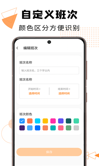 可自行对班表进行编辑名称,便于知道,并能高效工作。支持为不同班次设置个性化名称,如"早班"、"夜班"等。