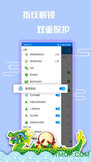 提供数字密码、图形密码和指纹解锁三种方式,满足不同用户需求