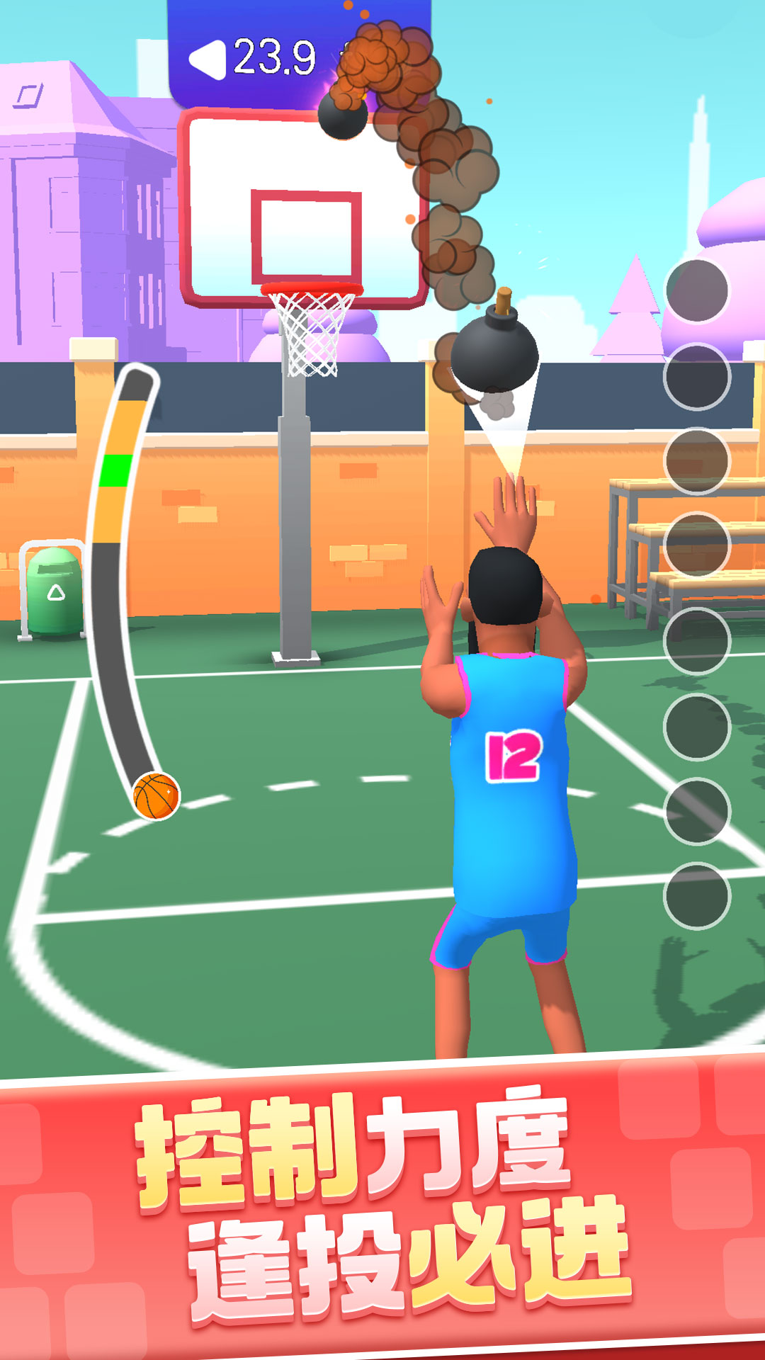 游戏设置了独特的投篮机制,玩家需要注意篮球未到达篮筐底部时不能投篮,增加了游戏的操作技巧性。
