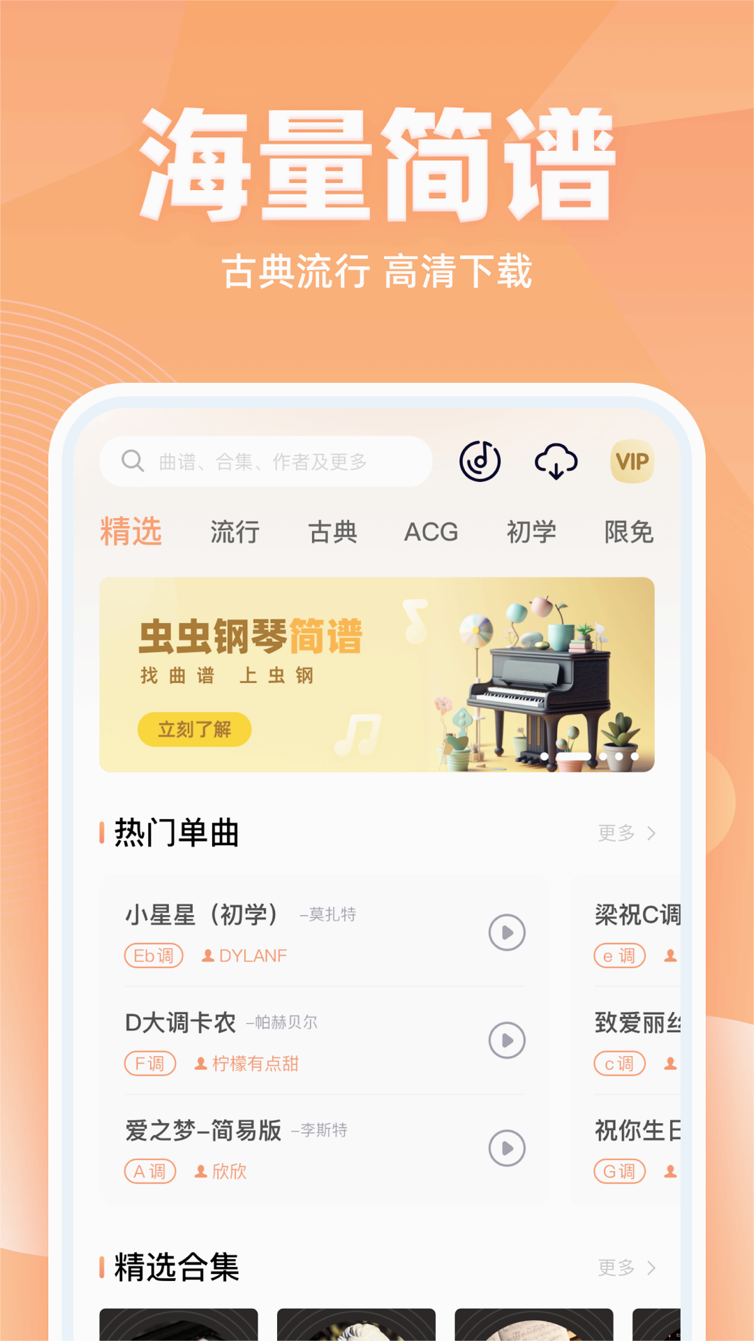 【海量钢琴简谱】:虫虫钢琴简谱拥有全品类、多版本、多调式的正版授权钢琴谱简谱50,000余份,覆盖了钢琴教材、钢琴练习曲、古典钢琴简谱、流行钢琴简谱、儿童钢琴简谱等多品类的钢琴简谱需求。平台定期更新曲库,紧跟音乐潮流,确保用户能第一时间获取最新热门曲谱。从入门级的《小星星》到专业级的《梦中的婚礼》,从经典民谣到影视金曲,应有尽有。