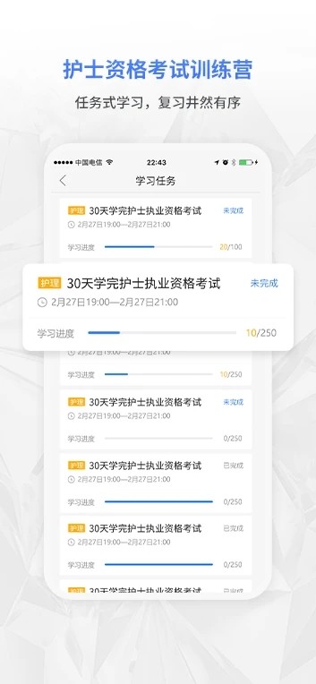全真模拟考试环境,让用户提前适应考场氛围,检验复习效果。真题训练模块精选历年考试题目,直击考试重点,通过反复练习显著提升应试能力。系统会根据模拟考试成绩给出专业建议,帮助用户查漏补缺。