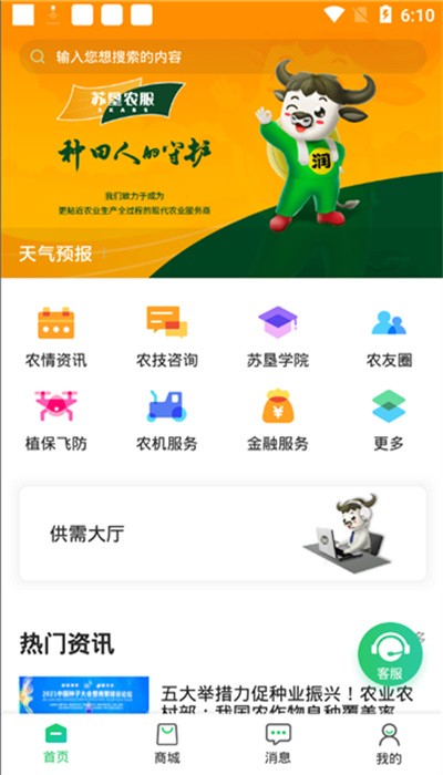 苏垦农服客户端由江苏农垦农业服务有限公司精心打造,是一款专为现代农业生产者设计的综合性服务平台。该平台以互联网技术为依托,整合优质农业资源,为规模种植户提供农技指导、农资采购、供需对接等一站式服务。平台以"农技、农机、农资"三大服务体系为核心,构建了功能完善、操作便捷的数字化农业生态。通过标准化的服务流程和个性化的解决方案,苏垦农服帮助种植户实现科学种植、高效管理,推动现代农业的可持续发展。