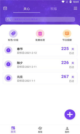 支持公历和农历倒数日期的计算和提醒功能,突出重要事件,支持时间排序。