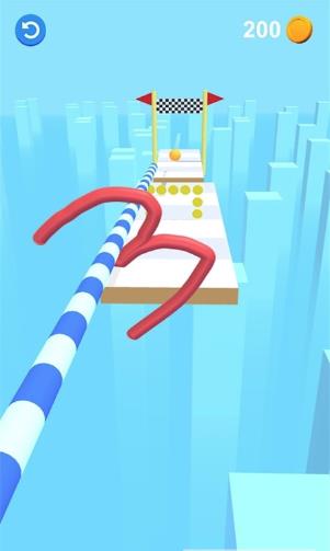 3、如果绳子不能挂在杆子上,它就会从球场上掉下来。游戏失败后会立即显示重试按钮,让你可以快速调整图形设计,这种即时反馈机制让游戏过程充满挑战性又不会令人沮丧。