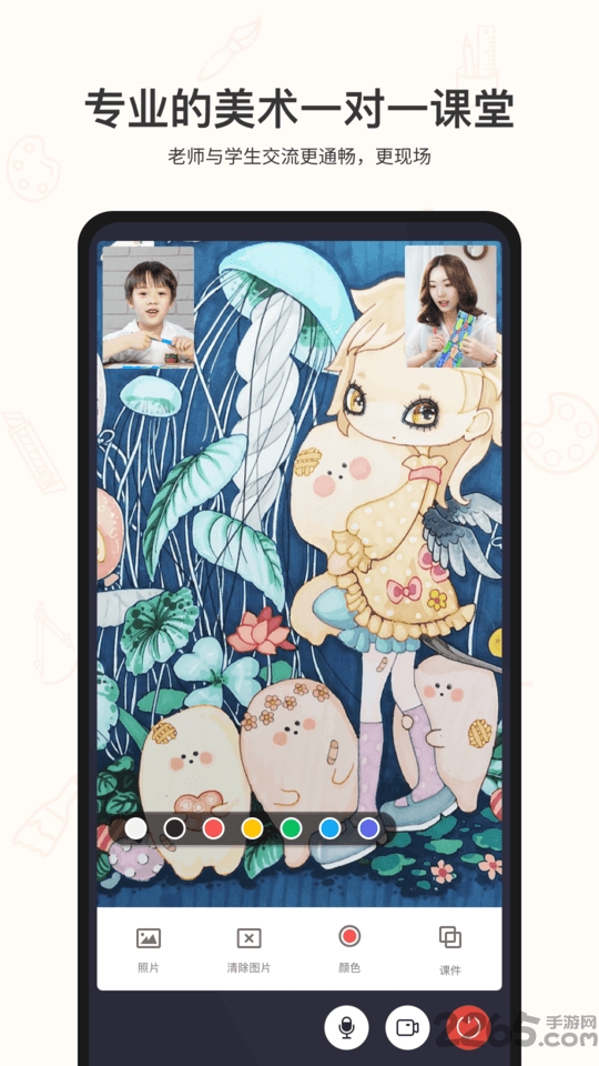 2、创新的在线教学模式,通过高清视频实时互动,模拟真实画室场景,让孩子足不出户就能享受专业美术指导。