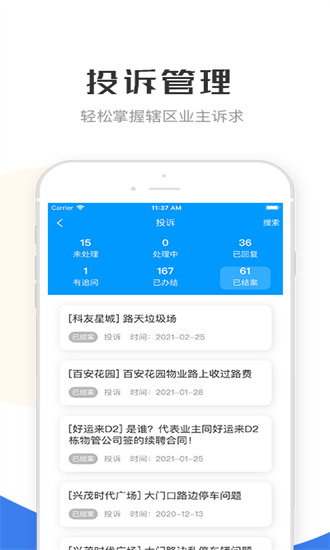 1、便捷的在线报修功能,业主家中设备或家电出现故障时,可直接在平台提交维修申请,系统会自动匹配最近的维修人员,大幅缩短响应时间;