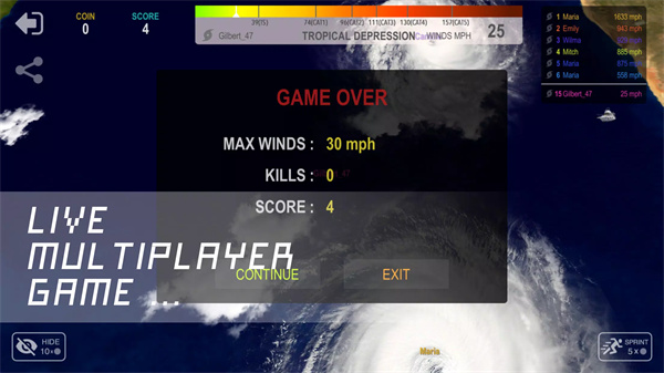 3、你的能量来源是空气中或海面上的水和热能,去猎杀比你小规模的飓风会使你迅速的成长。游戏创新加入"能量漩涡"系统,当两个飓风相撞时会形成临时能量场,胜者将获得双倍奖励。