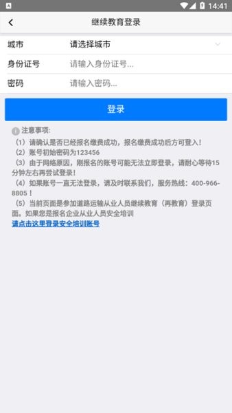 第一步:点击首页"继续教育"按钮,进入登录界面。系统会自动检测网络环境,弱网状态下将启动本地缓存模式。