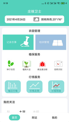 庄稼卫士APP是一款专为现代农业生产打造的智能农田管理工具,它将人工智能技术与农业植保需求深度融合,为种植户提供全方位的数字化解决方案。通过先进的图像识别算法和大数据分析能力,用户可快速识别作物病虫害、获取精准防治建议,还能实时掌握农田生长状况。无论是日常农事记录、病虫害预警,还是农产品溯源和行情分析,这款APP都能帮助农户科学决策,显著提升农田管理效率,让传统农业插上智能化的翅膀,实现降本增效的目标。