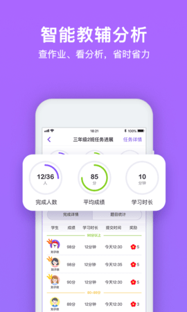 智能学习系统可根据学生水平自动生成个性化的听力和阅读训练任务,并实时跟踪学习进度,及时反馈作业完成情况。2、完善的班级管理系统提供详细的学习数据统计,教师可以查看每个学生的学习反馈,据此优化教学方案。3、贴心的家长辅助功能让英语基础薄弱的家长也能轻松辅导孩子,系统会提供详细的课文解析和标准发音示范。