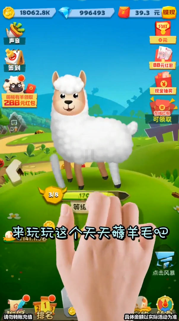 这是一款画风Q萌、玩法新颖的农场经营游戏。玩家注册登录即可获得初始羊群,系统会自动帮你薅羊毛赚取收益。游戏支持24小时挂机模式,即使离线也能持续获得奖励。独特的宠物养成系统为游戏增添了更多趣味性,通过培养不同等级的宠物可以解锁更高收益。每日任务和限时活动让你有更多机会赢取现金红包,轻松实现边玩边赚的乐趣。