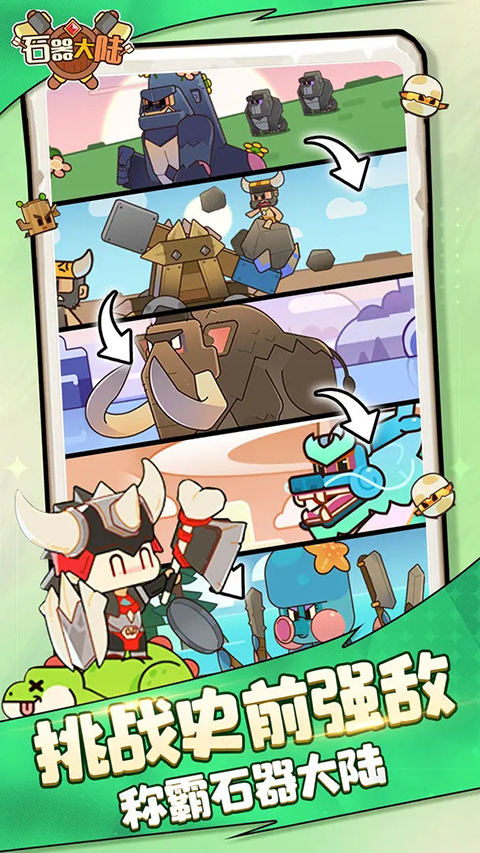 石器大陆是一款充满原始冒险气息的放置挂机手游。游戏以远古石器时代为背景,采用Q版卡通风格设计,搭配炫目的技能特效,为玩家构建了一个既复古又充满奇幻色彩的世界。在这里,你将扮演一位重返石器时代的原始人,通过喂养神秘小鳄鱼获取强力装备,逐步提升自己的战斗能力。游戏中不仅有形态各异的史前巨兽等待挑战,还有数十种独特技能可供学习,让你在对抗猛犸象、剑齿虎等史前生物时游刃有余。独特的宠物系统更是游戏一大亮点,上百种萌宠不仅能协助战斗,还能成为你的专属坐骑,带你畅游这片神秘大陆。