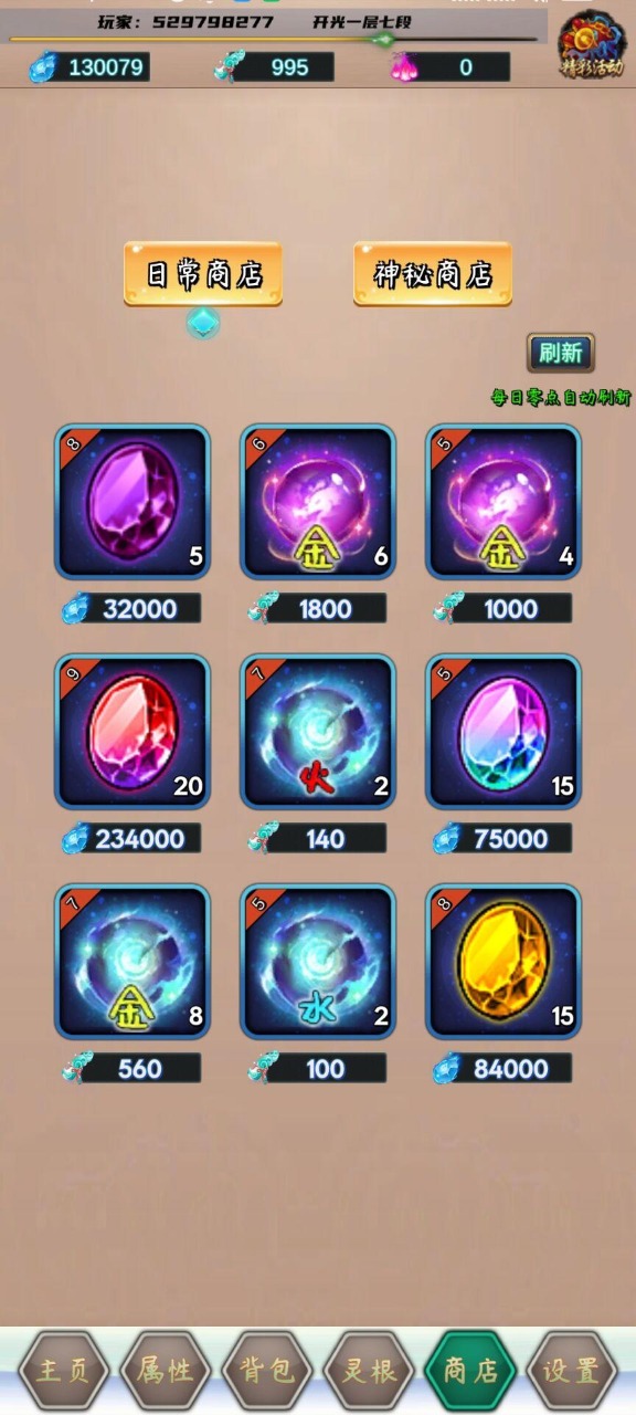 游戏以五行相生相克为核心玩法机制:水生木,木生火,火生土,土生金,金生水;同时水克火,火克金,金克木,木克土,土克水。玩家需要根据这些基本法则来培养角色、搭配技能。在这个五行界中,拥有强大的灵根是提升战力的关键。通过修炼不同属性的功法,玩家可以激活对应的五行之力,在战斗中打出高额伤害。游戏还融入了阴阳平衡系统,玩家需要合理调配阴阳属性,才能发挥出最大战力。独特的放置玩法让修仙变得轻松简单,即使离线也能获得丰厚奖励。