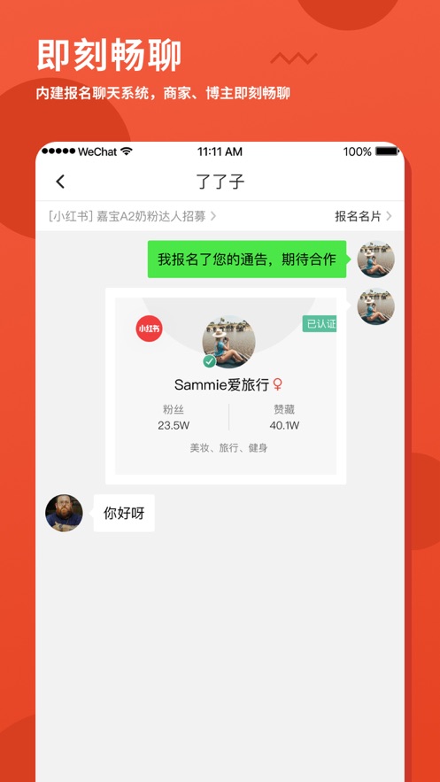 【内建聊天功能】平台内置专业即时通讯系统,支持文字、图片、文件等多种形式交流。合作双方可直接在App内沟通细节,避免跨平台沟通的不便,大幅提升合作效率,缩短交易周期。