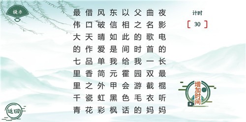 1.游戏独创"文字魔法"系统,将3000+常用汉字转化为可交互元素,玩家可通过拖拽、旋转、组合等方式破解谜题。例如在"偏旁炼金术"模式中,用"氵"旁搭配不同部首能召唤对应汉字的水系特效。2.动态难度引擎会根据玩家表现实时调整关卡参数,确保挑战性始终维持在"心流状态"。特别设计的"文渊阁"收藏系统会记录玩家解锁的所有汉字典故,并生成专属知识图谱。3.除传统解谜外,还包含"飞花令"多人对战、"甲骨文破译"考古玩法等12种特色模式,每月更新主题赛季玩法,如端午节限定"龙舟字谜竞速"。