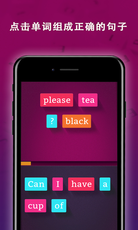 英语句子大师APP是一款专为英语学习者打造的创新教育软件,通过趣味化互动方式帮助用户高效掌握英语语法和句型结构。该应用采用独特的单词排列学习法,让用户在游戏化场景中轻松构建正确英文句子,特别适合各年龄段学生及英语爱好者使用。其专业设计的五级难度体系能精准匹配不同水平用户需求,结合实时评分系统和全球对战模式,使英语学习过程充满挑战与成就感。