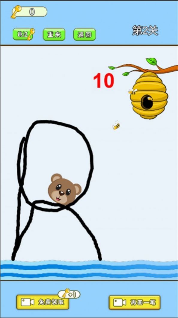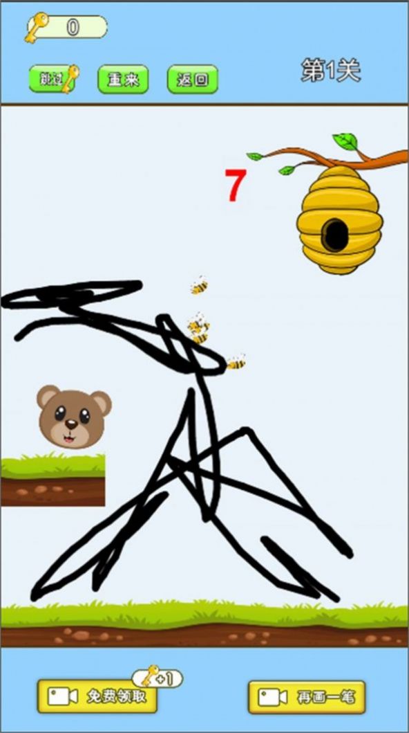 1、游戏提供了极具深度的画线机制,每条线条的弧度、长度和位置都会影响防护效果。错误的包围方式不仅无法保护小熊,反而可能成为蜜蜂的"引路标",这种物理模拟系统让游戏充满变数。
