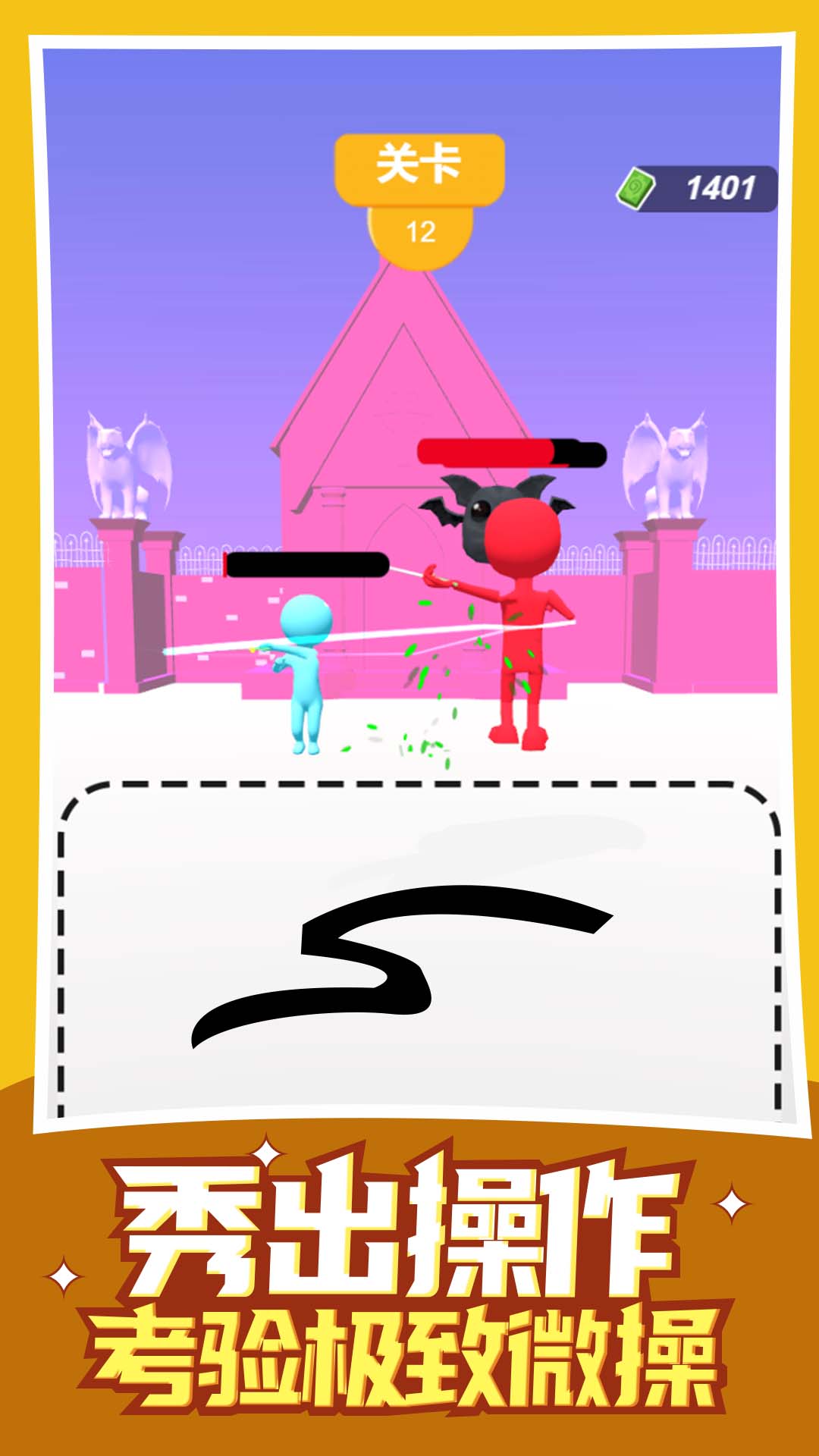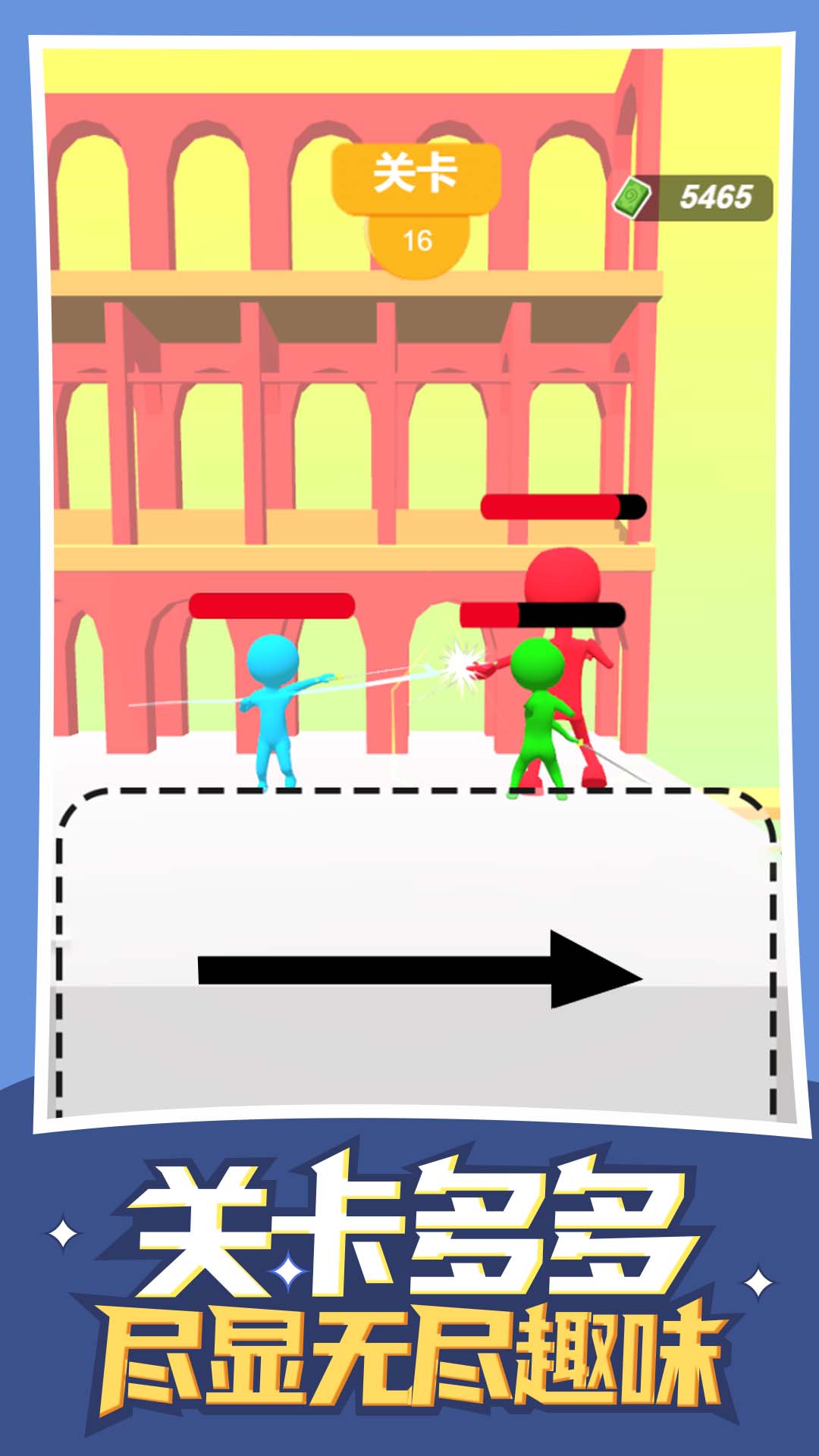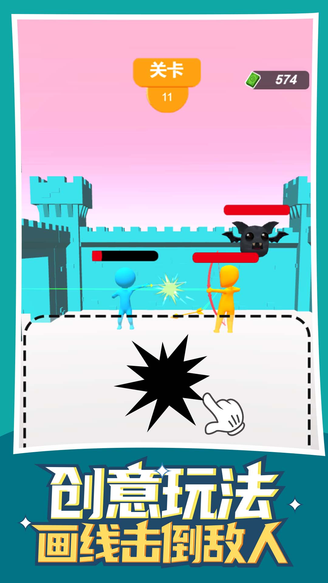 《最强画线》是一款充满创意与挑战的休闲闯关游戏,玩家将操控独特的橡皮人角色,在充满趣味的关卡中展开激烈对决。游戏的核心玩法是通过手指在屏幕上自由画线,创造出各种攻击招式来击败对手。随着关卡推进,玩家需要灵活运用策略,结合快速反应能力,在限定区域内绘制出最有效的攻击路线。游戏采用简约明快的卡通风格,搭配搞怪的角色设计,为玩家带来轻松愉快的游戏体验。无论是想锻炼手速还是发挥创意,这款游戏都能满足你的需求。