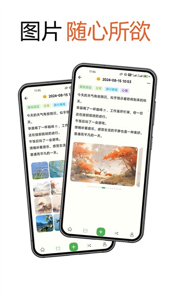 想要记录的内容都可以随心添加记录,可以更加自由的记录个人笔记;没有字数限制和内容审查,完全私密的写作空间。支持插入视频链接、位置信息和天气状况,让日记内容更立体丰富。