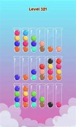 1、游戏核心玩法是对试管内的彩色球进行排序分类,看似简单实则充满挑战。需要玩家仔细观察球的分布,规划最优移动路径,非常锻炼逻辑思维能力。
