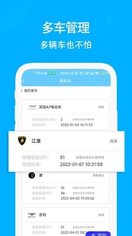 2、支持多车辆管理功能,通过一个手机应用即可同时监控家庭或车队中多辆车的能耗情况,大大提升管理效率。