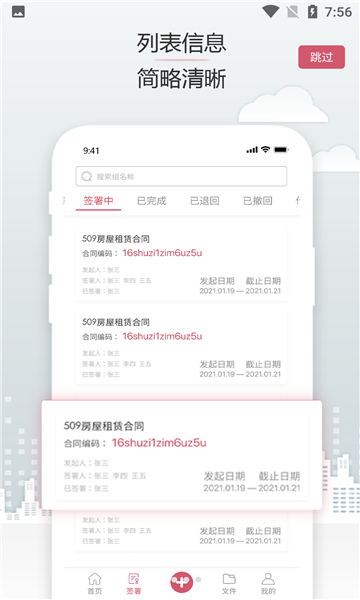 列表信息,简略清晰:智能分类管理已签署和待签署文件,支持多种排序和筛选方式,让文档管理井井有条。