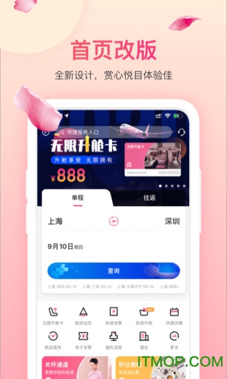 【改版】采用全新Material Design设计语言;【机票】新增模糊搜索和智能推荐功能;【服务】值机选座增加座位舒适度评分;【会员】企业客户可申请差旅管理后台。
