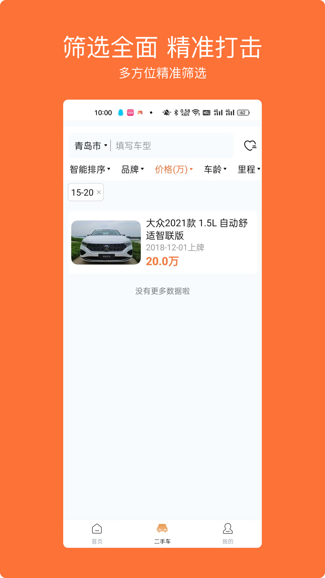 - 筛选全面精准打击:可按品牌、价格、里程、车龄等多维度筛选,智能推荐系统还能根据浏览习惯个性化推荐;