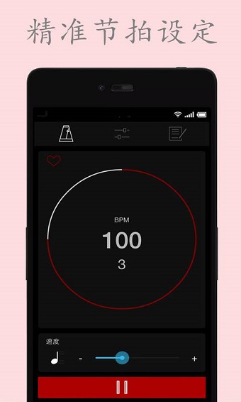 2.速度调节功能:通过滑块或数字输入精确调整节拍速度(BPM),范围通常为20-300BPM,覆盖从慢速练习到快速演奏的所有需求。部分高级版本还支持速度渐变,模拟乐曲中的渐快或渐慢效果。专业版更提供速度曲线编辑功能,用户可以自定义速度变化模式,完美还原乐曲中的情感起伏。