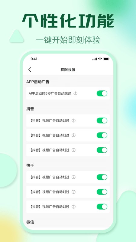 快跳跳APP是一款专为提升移动体验而设计的智能广告拦截工具。它能自动跳过各类应用烦人的开屏广告和弹窗广告,让您瞬间进入应用主界面,节省宝贵时间。除了强大的广告过滤功能,该软件还集成了手机加速、后台清理等实用工具,帮助您的设备保持流畅运行。简洁直观的操作界面让所有功能一目了然,无论是科技达人还是普通用户都能轻松上手。更值得一提的是,它还能智能识别短视频中的插播广告和直播推荐,为您打造纯净无干扰的移动娱乐体验。